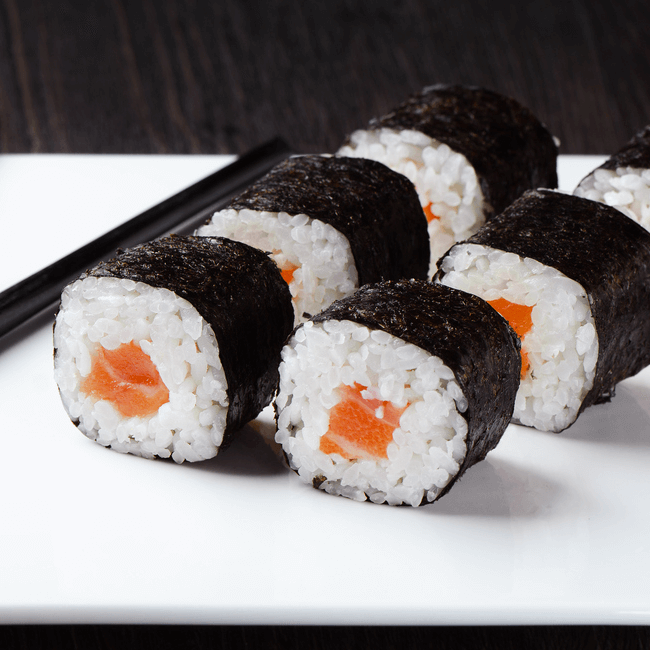 - Hotovou rolku nechte pár minut odležet, aby řasa nasála vlhkost z rýže. Sushi se pak bude lépe krájet.