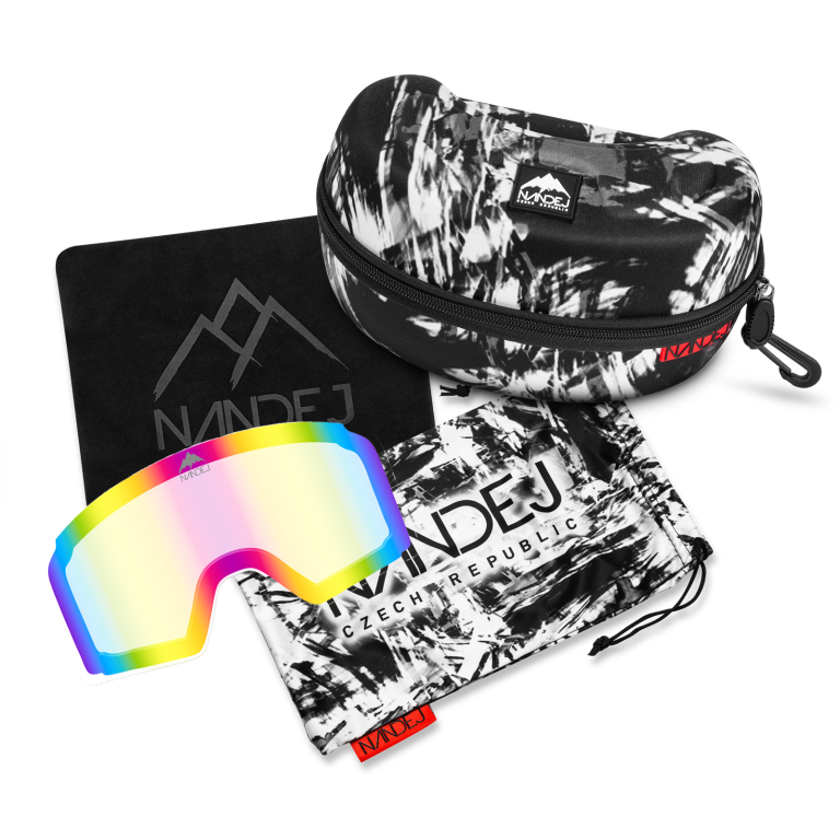 Lyžařské brýle NANDEJ MOUNT NEW mají skla uchycena na 10 silných magnetech a oceníš jejich velkou výhodu v extrémně jednoduché výměně skel.